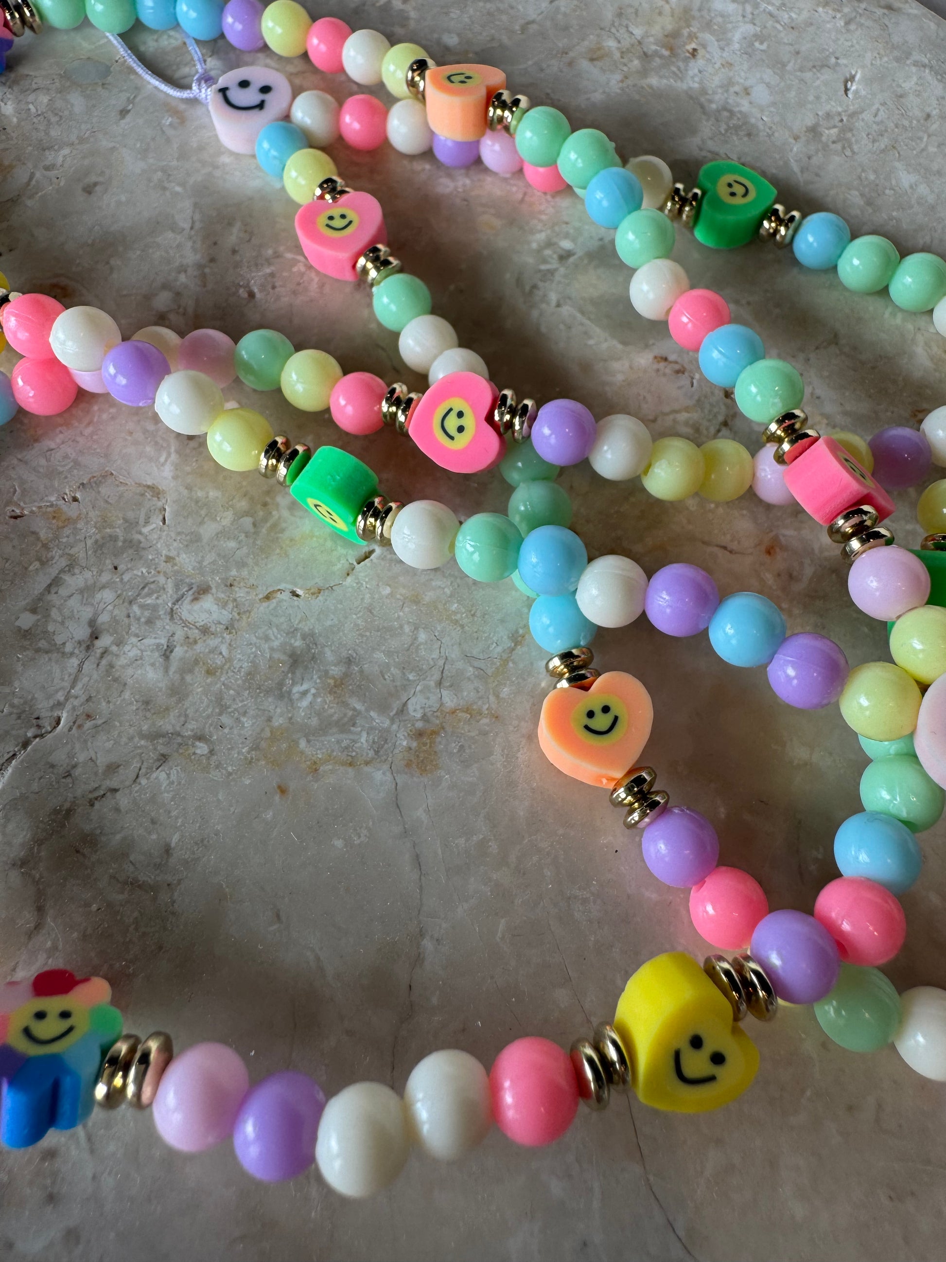 Diese farbenfrohe Handkette mit fröhlichen Smiley-Perlen bringt sofort ein Lächeln aufs Gesicht! Perfekt für den Sommer, Festivals oder einfach als kleines Statement für mehr Positivität im Alltag. Leicht, verspielt und ein echter Hingucker – ideal für Kinder, Teenager oder alle, die das Leben bunt lieben.